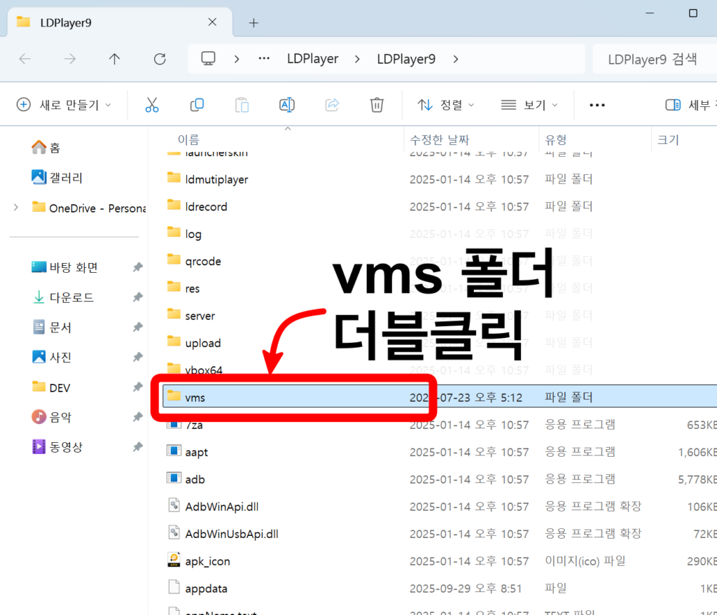 vms 폴더를 더블클릭하여 이동
