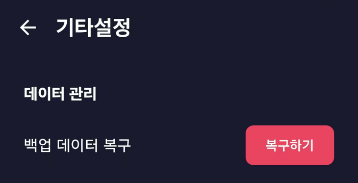 1️⃣ 라꼬봇/라꼬봇나인 앱 메인 화면에서 설정 → 기타설정 → 백업 데이터 복구 우측 복구하기 버튼 클릭