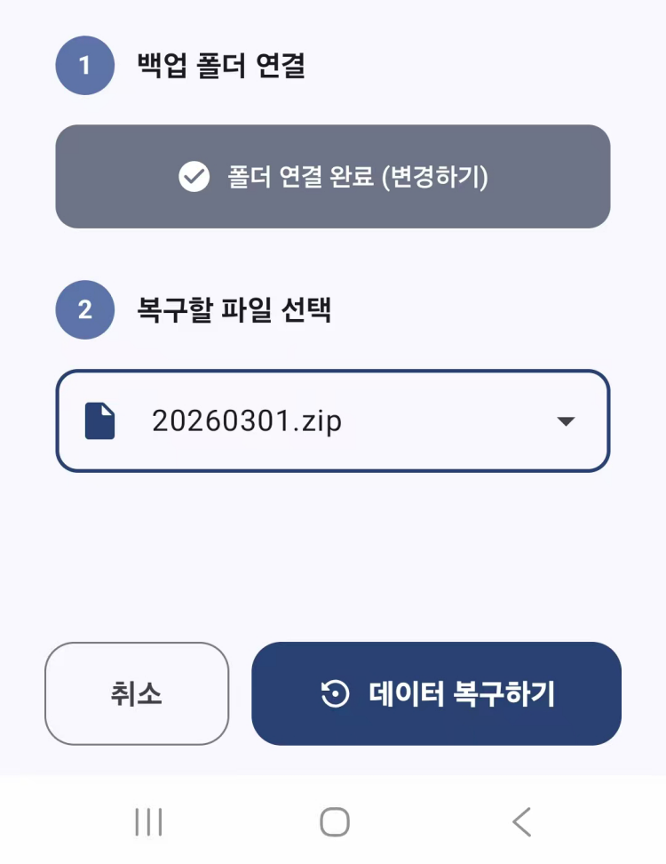 2️⃣ 백업 폴더 연결 아래의 폴더 선택하기 버튼 클릭