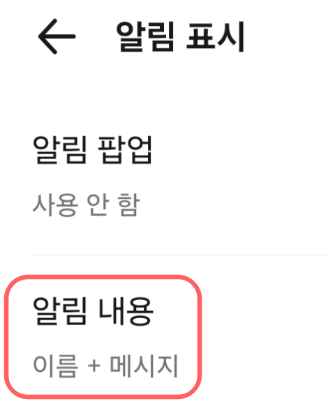 봇계정의 카톡에서 전체 설정 – 알림 – 알림 표시 – 알림 내용 부분에 “이름 + 메시지” 로 선택되어 있어야 합니다. 표시 안함으로 설정하시면 안 됩니다.
